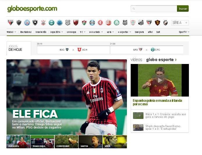 La trattativa per il passaggio sfumato di Thiago Silva al PSG ha appassionato i media italiani, francesi e brasiliani. Dopo aver riportato le reazioni degli organi di stampa transalpini, ecco l'apertura di Globoesporte sulla vicenda. Il prestigioso portale brasiliano titola. "Resta!" riportando all'interno del pezzo le parole di Silvio Berlusconi apparse sul sito ufficiale rossonero alle 21.45.