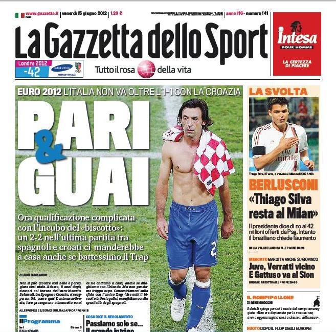 Ecco la prima pagina della Gazzetta dello Sport che evidenzia, nell'apertura di spalla, come sia stato Silvio Berlusconi a dire di no alla cessione di Thiago Silva al PSG. La rosea riporta il virgolettato del numero uno di via Turati che poi, in serata, ha parlato in esclusiva a Sportitalia.
