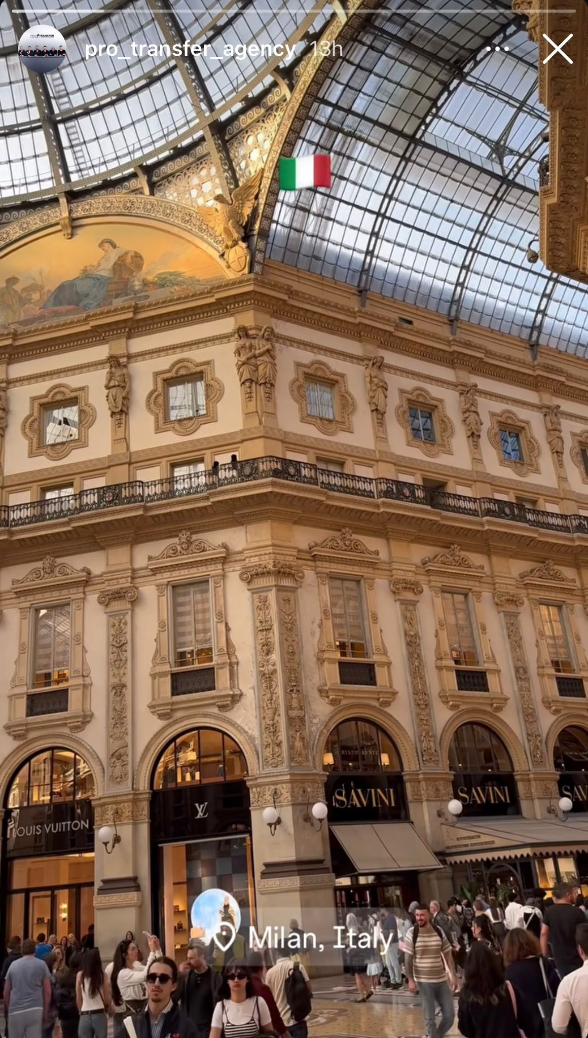 Come si evince da una foto pubblicata sul proprio profilo Instagram, in queste ore la Pro Transfer Agency, guidata da Elvis Basanovic, è a Milano. L'agenzia ha pubblicato una foto (in fondo all'articolo) direttamente dalla galleria Vittorio Emanuele II, accanto al Duomo. Si tratta dell'azienda che cura i diritti e le prestazioni sportive dell'attaccante sloveno Benjamin Sesko, in forza al Lipsia e accostato al Milan come possibile nuovo centravanti. L'agenzia ha tra i suoi assistiti anche il centrocampista Antoine Makoumbou che domani con il suo Cagliari sfiderà proprio i rossoneri a San Siro.