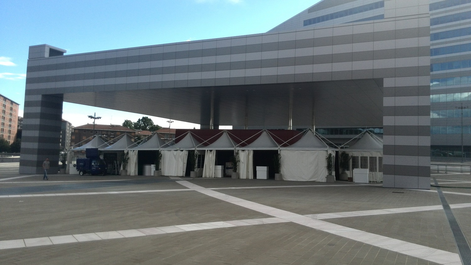 Work in progress nella sede del Milan. Sulla piazza antistante l’ingresso degli uffici è in corso l’allestimento di tendoni e attrazioni in vista del raduno di domani pomeriggio. Sono previste grosse sorprese per i tifosi che accoglieranno l’arrivo della squadra. MilanNews.it ha fotografato per voi i lavori di allestimento nella piazza.