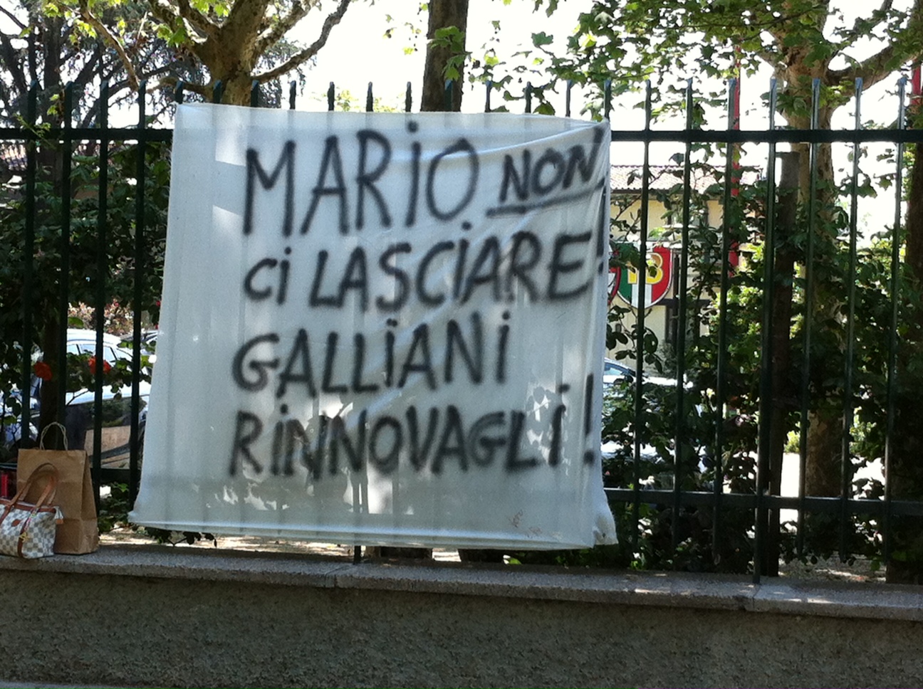 Grande folla oggi fuori dai cancelli di Milanello dove numerosi tifosi hanno aspettato l'uscita dei loro beniamini per poter avere un autografo. All'esterno del centro sportivo rossonero, alcuni supporters del Milan, evidentemente fan di Mario Yepes, hanno affisso uno striscione che recita così: "Mario non ci lasciare. Galliani rinnovagli il contratto".
