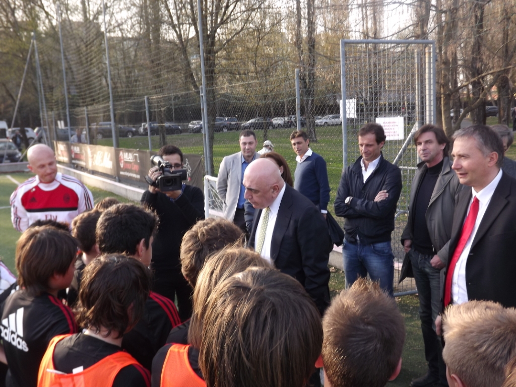 Emozione per tutti i ragazzi del settore giovanile quest’oggi al Centro Sportivo Vismara per la visita dell’AD milanista Adriano Galliani, del DS Ariedo Braida e dell’allenatore del Milan Massimiliano Allegri che, oggi pomeriggio, hanno fatto visita alle formazioni giovanili milaniste. A fare da padrone di casa, il responsabile del settore giovanile milanista, Filippo Galli insieme ad Antonella Costa, responsabile organizzativa del vivaio milanista. Ecco le foto più belle della visita a sorpresa dei massimi vertici milanisti.