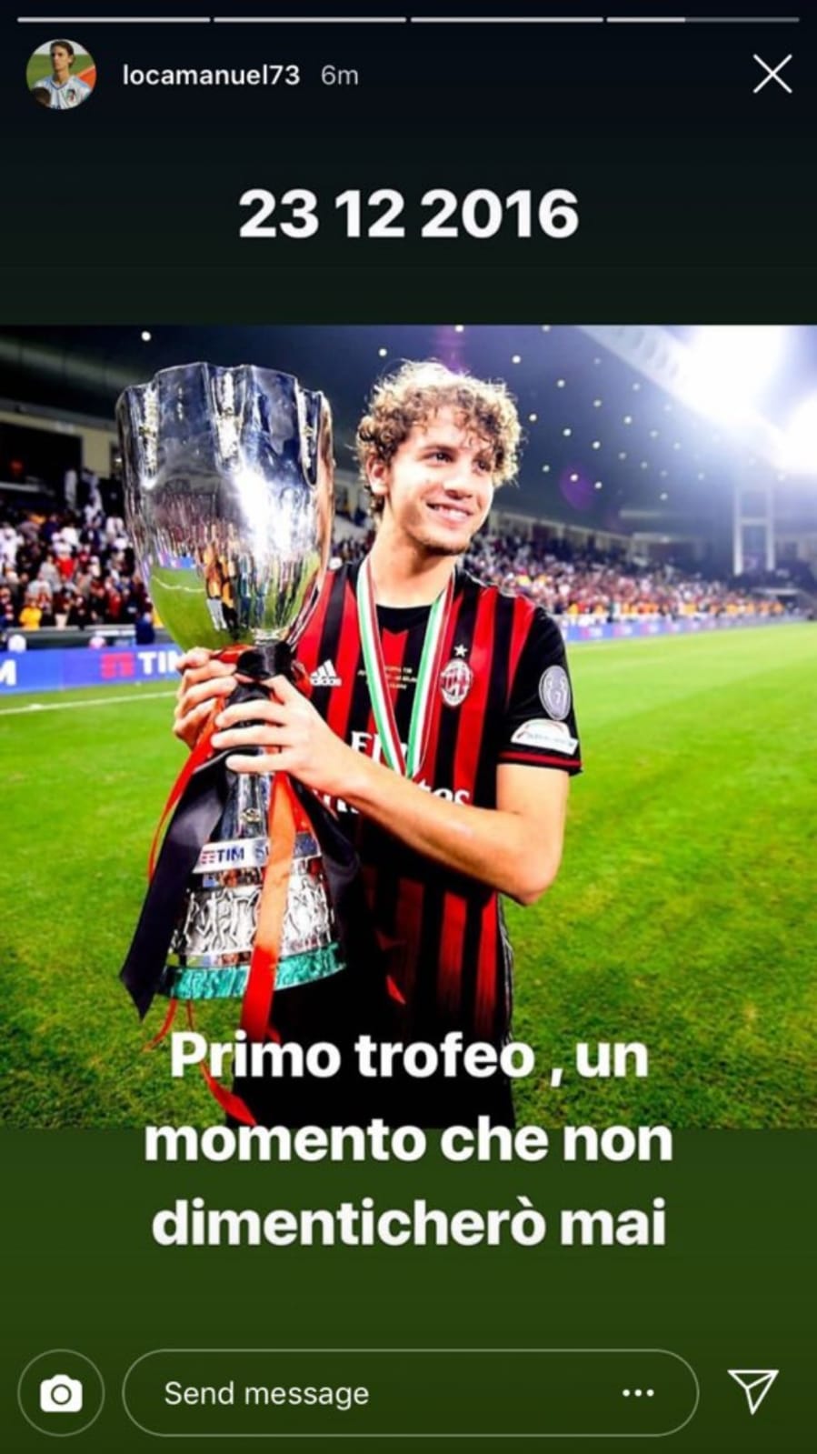 Due anni fa oggi il Milan sollevava a Doha la Supercoppa italiana, dopo aver sconfitto in finale la Juventus. Quello fu il primo trofeo vinto tra i professionisti per l'allora rossonero Manuel Locatelli che, oggi, intervenuto nelle stories di Instagram ha ricordato quel momento con una foto.