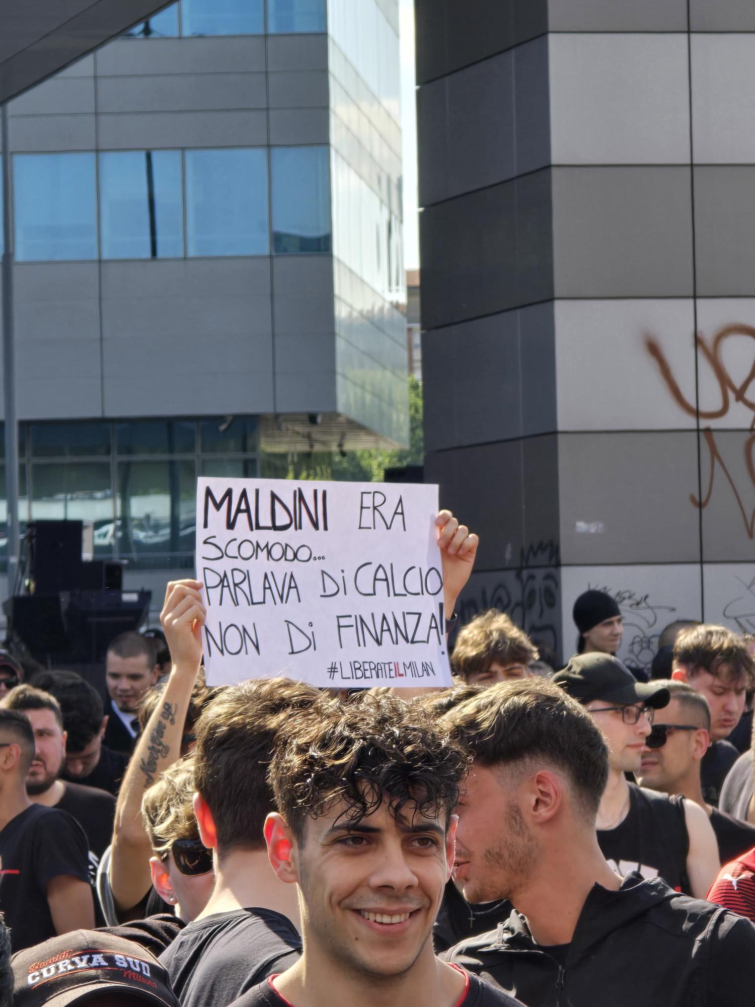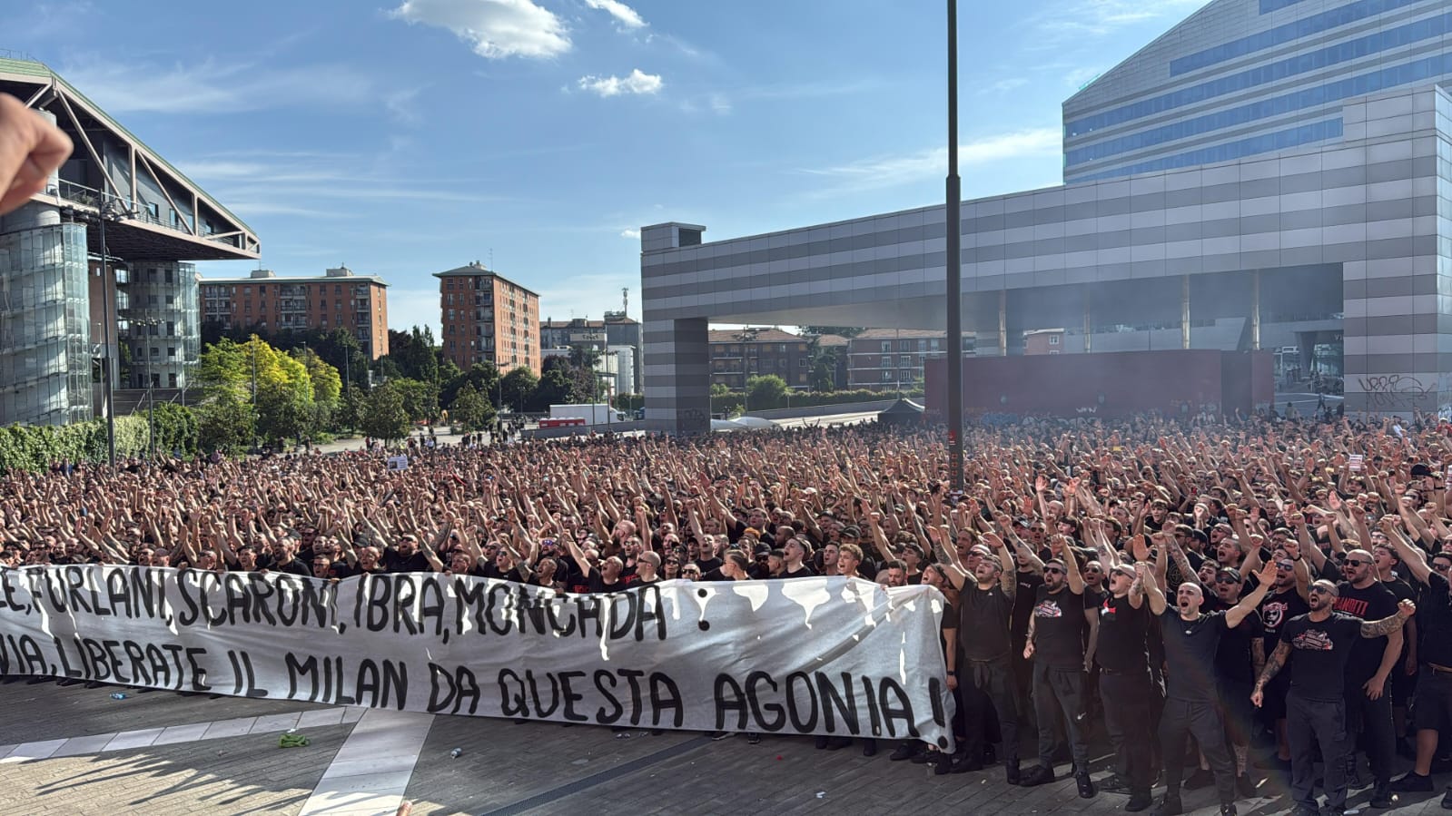 La contestazione dei tifosi del Milan sotto la sede del Club, convocata dalla Curva Sud ma che ha coinvolto anche tantissimi tifosi generici, ha radunato nel piazzale di fronte a Casa Milan una marea rossonera. Tra i cori per Maldini, quelli contro Cardinale, Furlani, Scaroni e Ibra, gli striscioni contro la società e la dirigenza, il messaggio della Curva Sud contro quelli che sono ritenuti i colpevoli del fallimento rossonero di questa stagione, la manifestazione è proseguita in modo sostenuto ma pacifico.