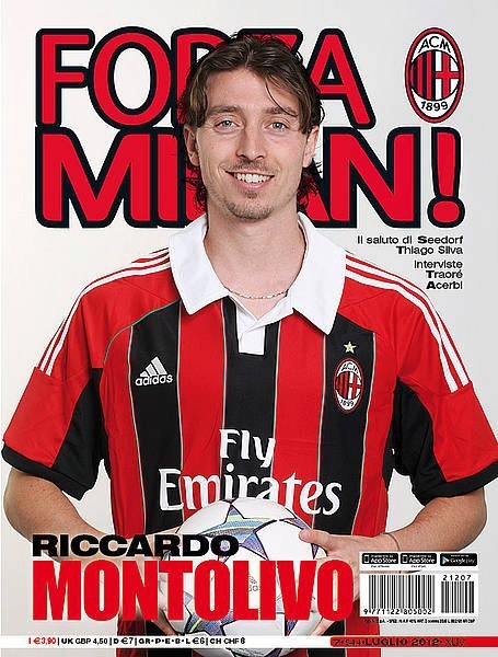 Eccovi la copertina del numero di luglio di Forza Milan! che ha come protagonista il nuovo centrocampista del Milan, Riccardo Montolivo che, per la prima volta, posa con la maglia rossonera addosso.