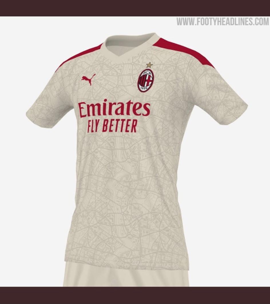 Il portale "Footy Headlines" ha svelato in anteprima alcuni dettagli della seconda maglia del Milan per la stagione 2021-2022: la divisa da trasferta sarà del colore Puma 'Afterglow' ovvero un misto tra il Beige e Oro. Sulle spalle invece spazio ad un rosso opacizzato. La maglia è ispirata alla cartina della città di Milano come testimonia la fantasia in secondo piano che richiama alle vie milanesi. Queste le immagini di Footy Headlines.