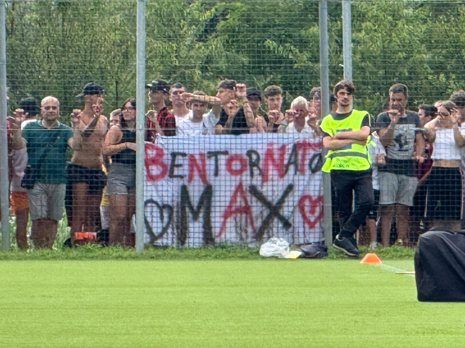 I tifosi del Milan hanno subito riaccolto Massimiliano Allegri dedicandogli uno striscione, catturato dalle fotocamere di MilanNews.it. Scrivono i tifosi rossoneri: "Bentornato Max".