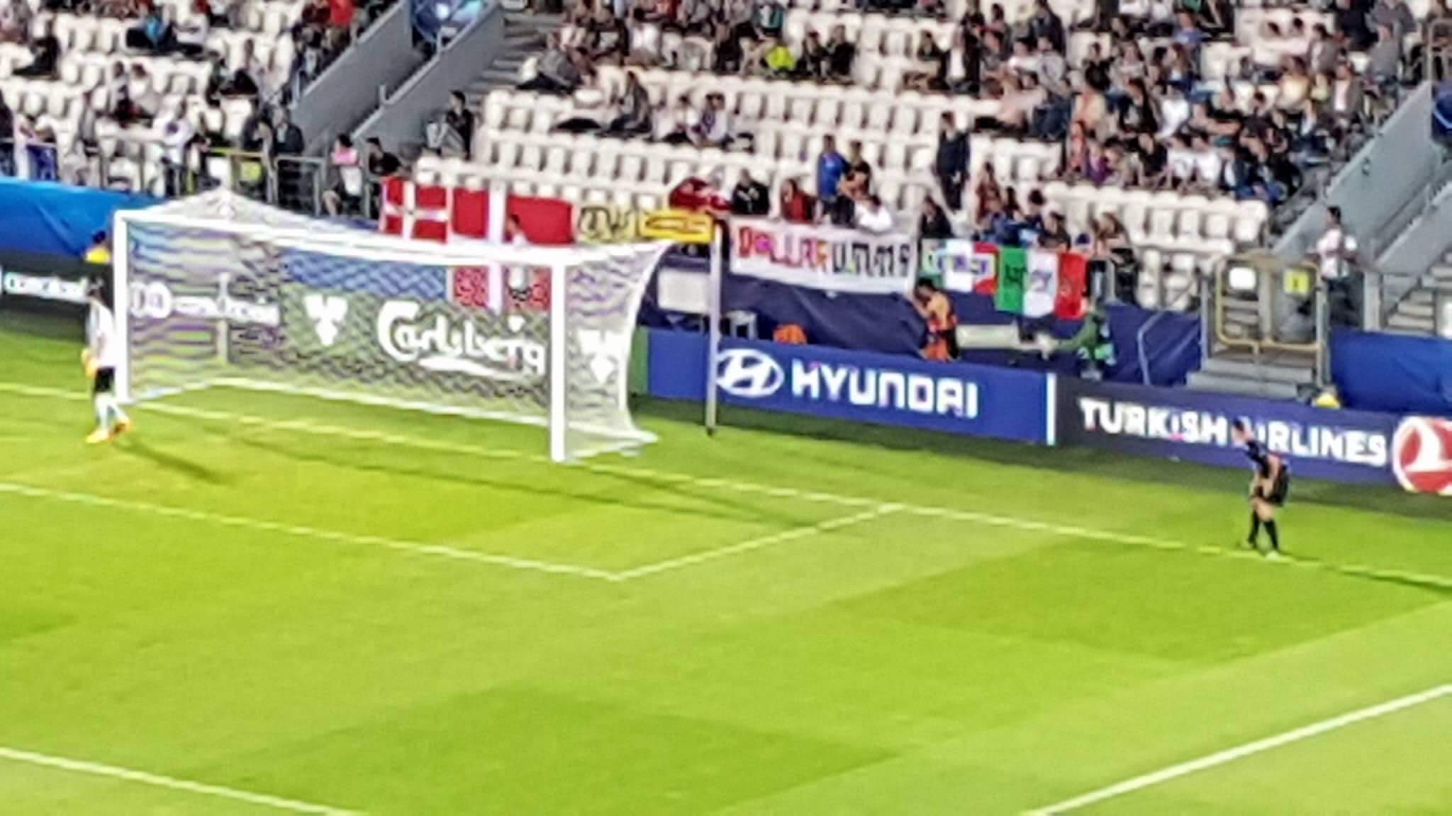 Uno striscione scritto in rossonero dal Milan Club Polonia che accoglie in maniera non proprio amichevole Gianluigi Donnarumma agli Europei Under 21, il cui cognome è stato modificato in DOLLARUMMA.