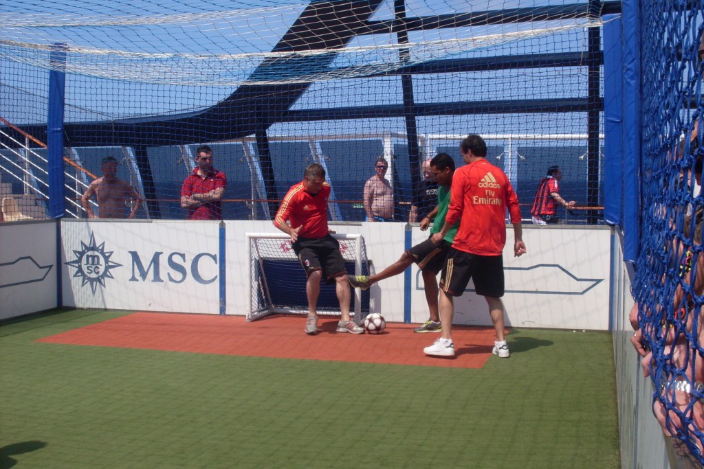 Intorno alle ore 15, sul ponte numero 16 della MSC Splendida che sta facendo rotta verso Tunisi, è andato in scena un mini torneo d’esibizione al quale hanno preso parte Massimiliano Allegri, Andrea Maldera, Daniele Massaro e Serginho che si sono sfidati in partitelle 2 contro 2. Ecco alcuni degli scatti effettuati da MilanNews.it che ritraggono i protagonisti in azione.