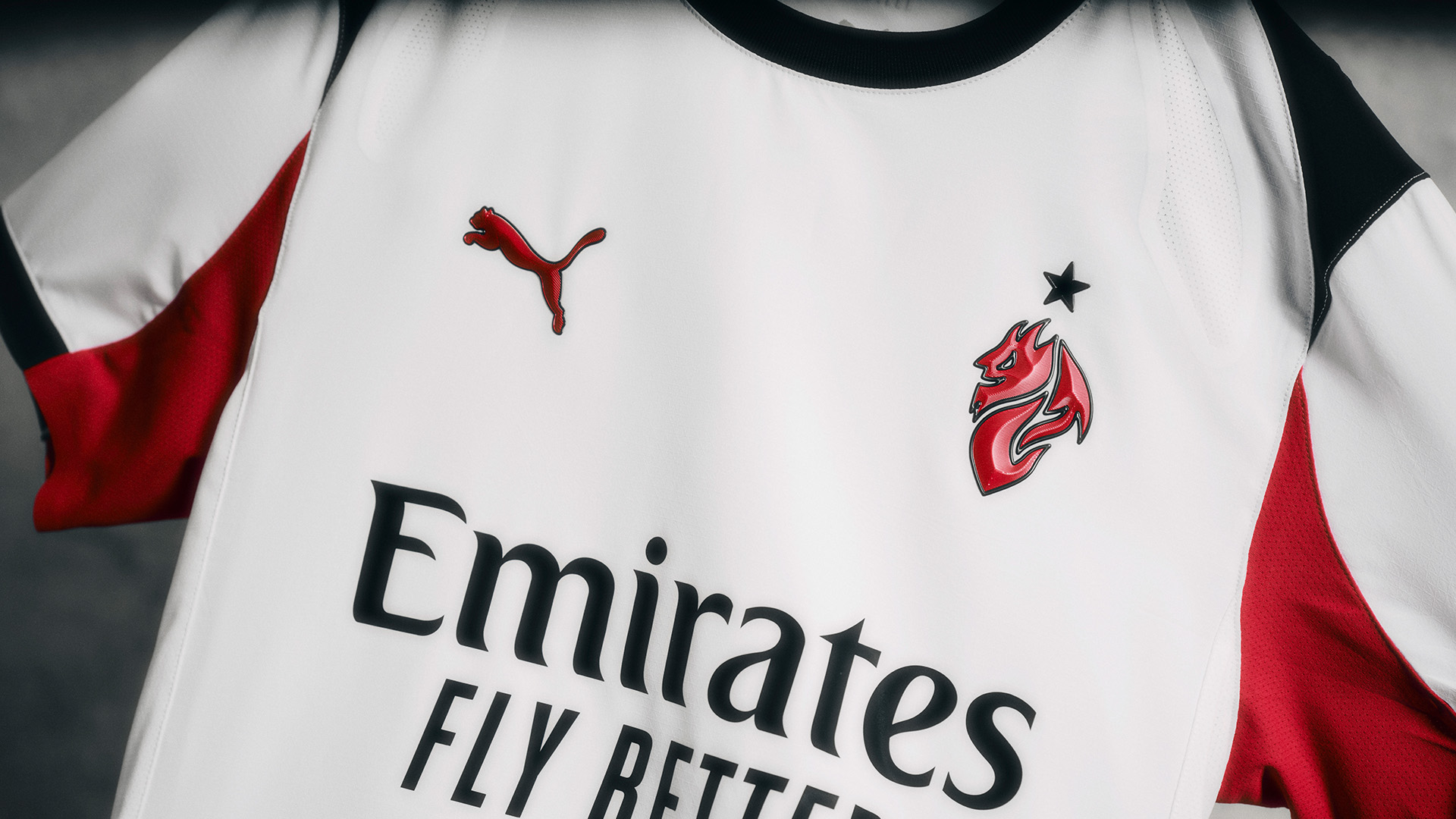 AC Milan e PUMA hanno svelato oggi il nuovo Away kit per la stagione 2025/26, caratterizzato da un design “diabolico” che rende omaggio alla ricca storia e cultura dei rossoneri. La maglia reinterpreta un grande classico senza tempo: una base white - elemento iconico delle maglie Away del Milan – arricchita da accenti dinamici in red e black.