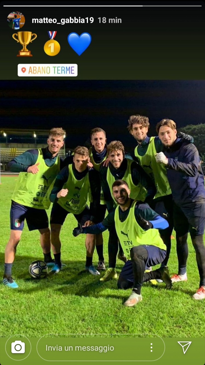 Matteo Gabbia, difensore del Milan, ha pubblicato una story su Instagram, mostrando una foto dell'allenamento dell'Under 21, dove la sua squadra ha prevalso in partitella. Da sottolineare come in questa mini formazione siano presenti, oltre a Gabbia, un giocatore di proprietà rossonera come Plizzari (in prestito al Livorno) e tre ex: Cutrone, Locatelli e Zanellato.