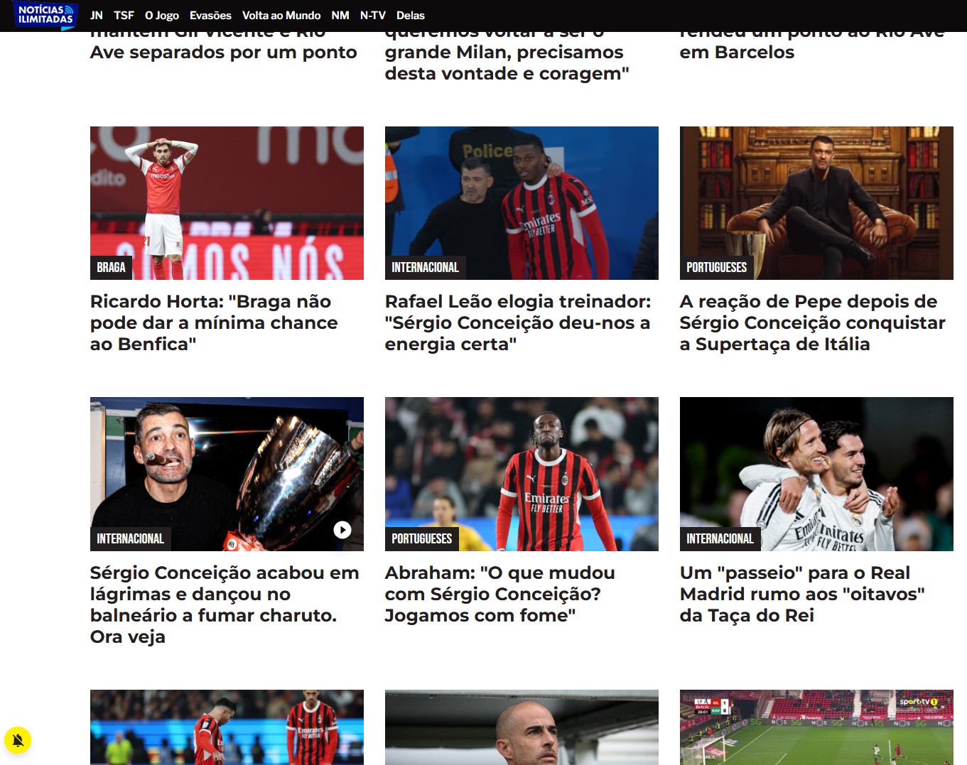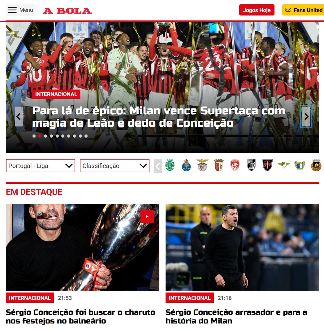 "Rafael Leao entra, contribuisce alle tre reti e la Supercoppa Italiana va a Sergio Conceiçao" titola "O Jogo", quotidiano di Porto e pertanto particolarmente interessato alle vicende del tecnico più vincente della storia dei "Dragoes" e ora al Milan. Il primo piano di A Bola è invece: "Oltre l'epico: il Milan vince la Supercoppa con le magie di Leao e la guida di Conceiçao". Anche Record dà ampio spazio al derby giocato a Riyad: "Lo sprint di Leao nel gol del trionfo del Milan e l'emozione di Sergio Conceiçao alla fine".