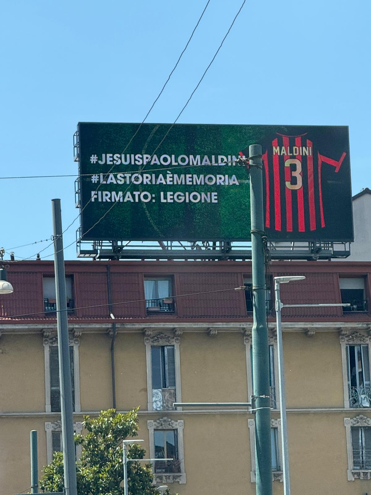 Ma la protesta continua anche oggi e pure con forme inedite, come un cartellone pubblicitario digitale apparso nelle ultime ore a Milano, nella zona est della città. Il protagonista del messaggio è il l'uomo che i tifosi del Milan hanno eretto a simbolo della contestazione, l'ex capitano e dirigente Paolo Maldini. Come si vede nella foto di MilanNews.it, nel messaggio si legge accanto a una maglia rossonera con il numero 3: "#jesuispaolomaldini #lastoriaèmemoria". C'è anche una firma: "Legione".
