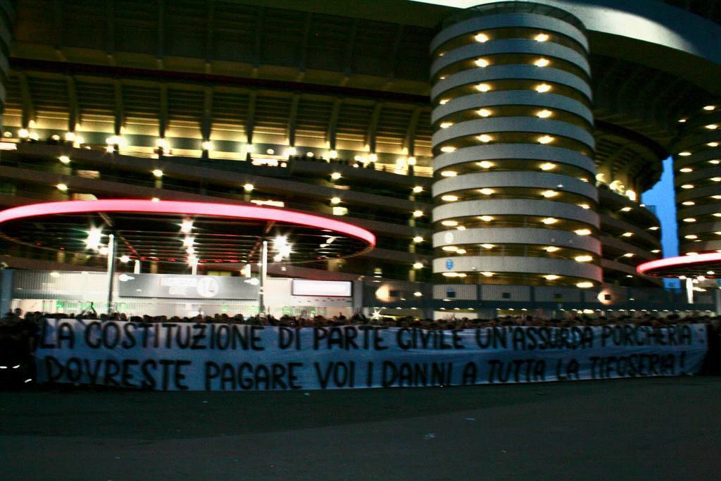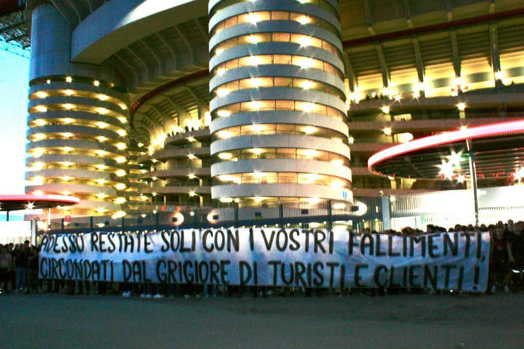 Sono stati esposti anche due ulteriori striscioni, entrambi contro la proprietà e il club. Il primo recita: "Restate soli con i vostri fallimenti, circondati dal grigiore di turisti e clienti". Il secondo invece reca scritto: "La costituzione di parte civile un'assurda porcheria, dovreste pagare voi i danni a tutta la tifoseria!".