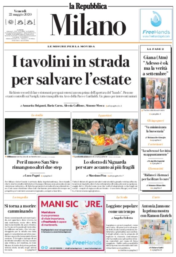 La Repubblica (ed. Milano) nella parte centrale della prima pagina utilizza questa mattina il titolo seguente: "Per il nuovo San Siro rimangono altri due step". Arriva l'assist della Sovrintendenza per Milan ed Inter: "Non presenta più alcun interesse culturale: può essere demolito". Ora la strada è spianata visto che i due club presentano da tempo un progetto per costruire un nuovo impianto, sempre a San Siro.