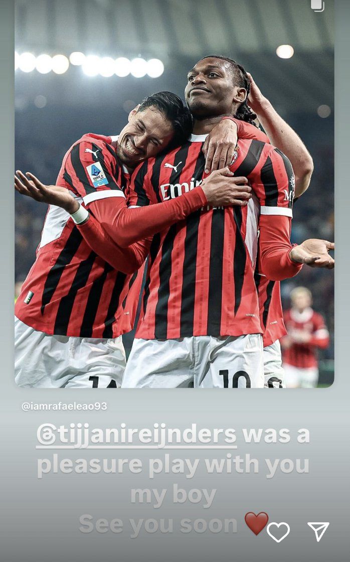 Leao saluta Reijnders: "È stato un piacere giocare con te, ci vediamo presto!"