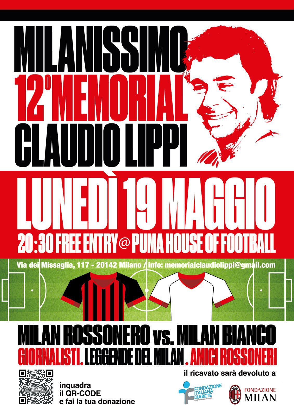Si avvicina la dodicesima edizione del memorial “Claudio Lippi” che ricorda il collega di Milan Channel scomparso in un tragico incidente stradale nel marzo 2013. La sfida tra Milan rossonero e Milan bianco si giocherà lunedì 19 maggio al Puma, House of Football - Centro Sportivo Vismara, con il calcio d’inizio fissato per le ore 20.30. Ecco alcuni ex giocatori che hanno già confermato la loro presenza alla serata: Filippo Inzaghi, Massimo Ambrosini, Marco Amelia, Cristian Brocchi, Alessandro Budel, Rolando Bianchi e Nicola Legrottaglie.