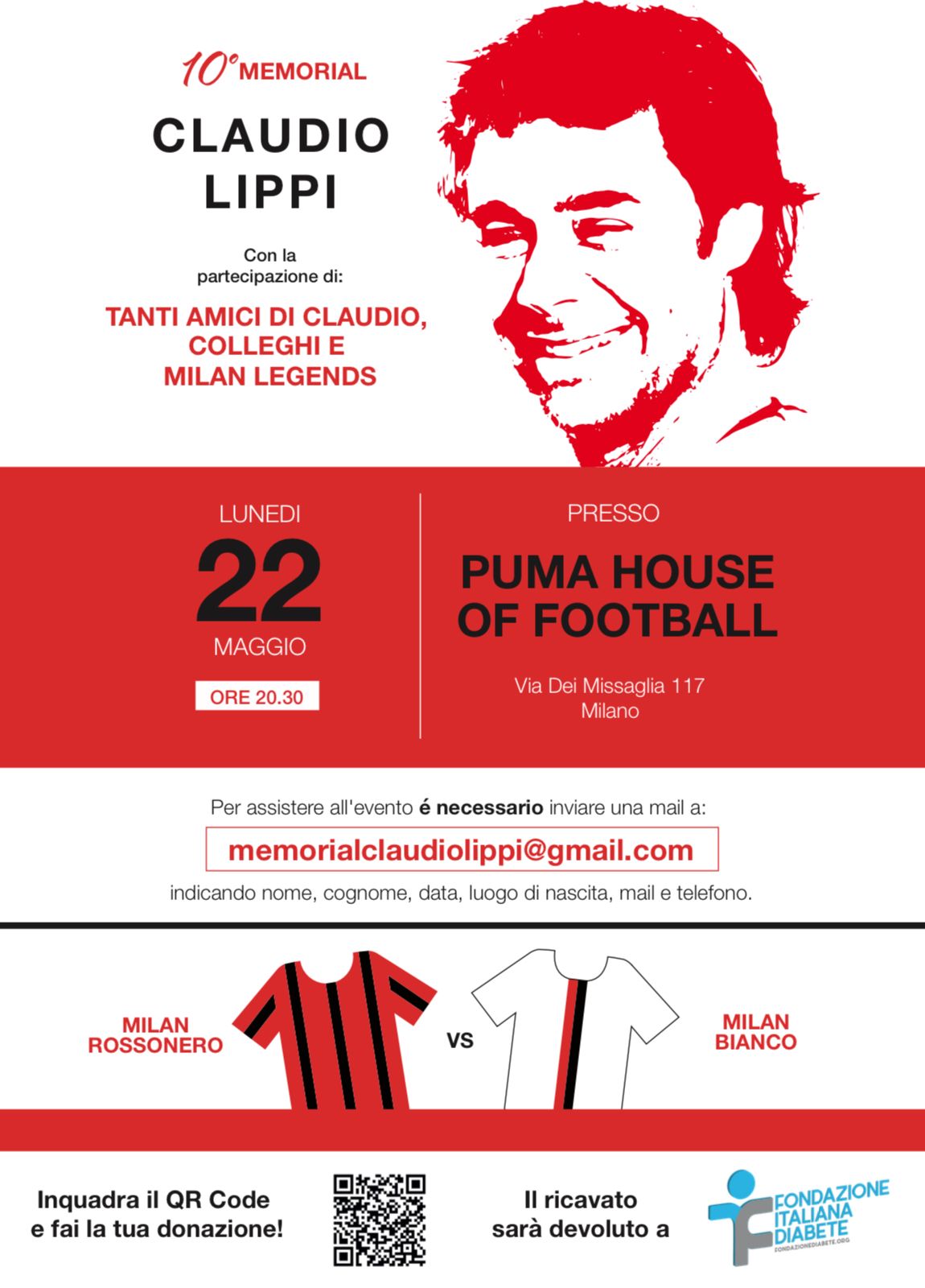Si avvicina la decima edizione del memorial “Claudio Lippi” che ricorda il collega di Milan Channel scomparso in un tragico incidente stradale nel marzo 2013. La sfida tra Milan rossonero e Milan bianco si terrà, come lo scorso anno, presso il “Centro Sportivo Vismara – Puma, House of Football” lunedì 22 maggio, con il calcio d’inizio fissato per le ore 20.30.