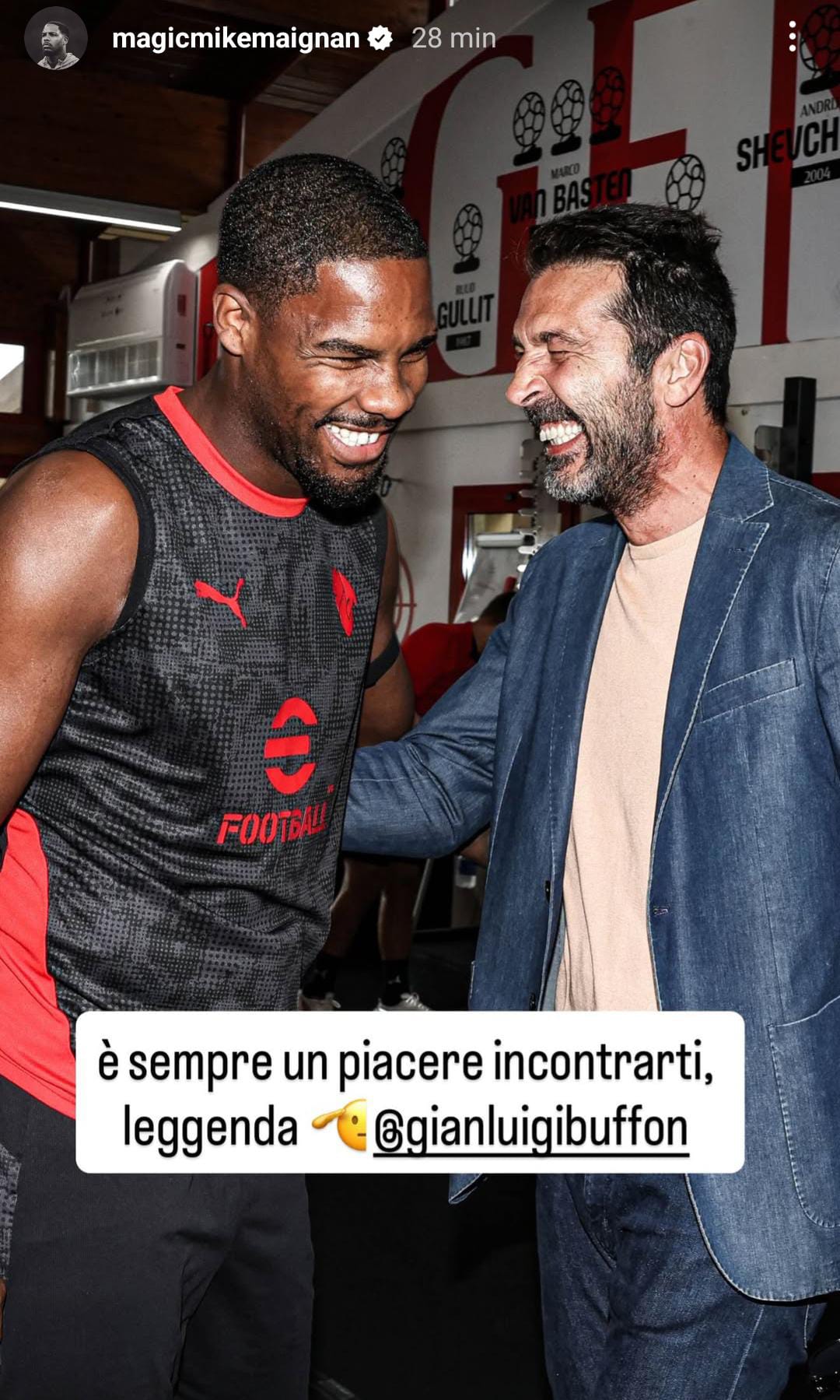 Il portiere del Milan ha voluto celebrare la visita dello storico portiere della nazionale con una storia Instagram: "È sempre un piacere incontrarti, leggenda"