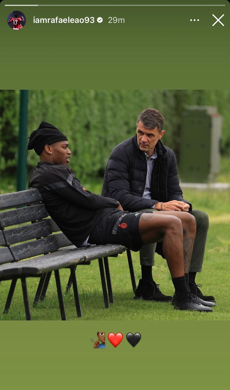 Maldini a colloquio con Leao: Rafa posta la bellissima foto con due cuori rossoneri