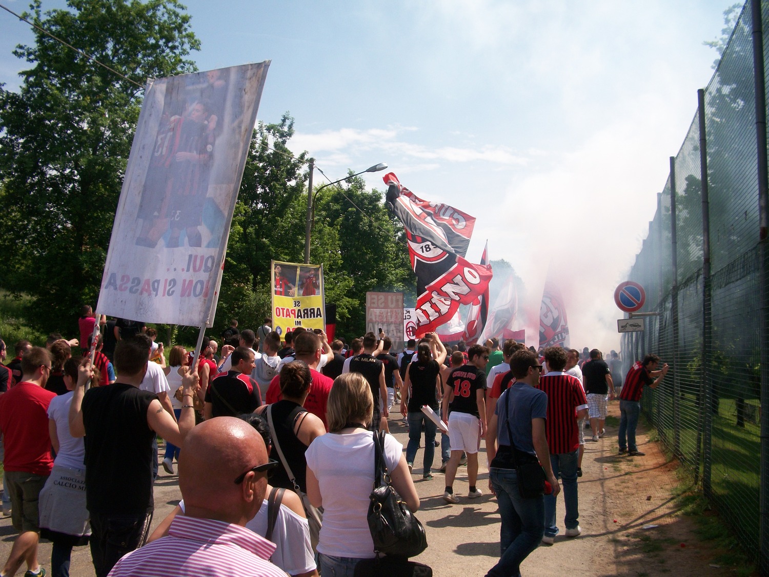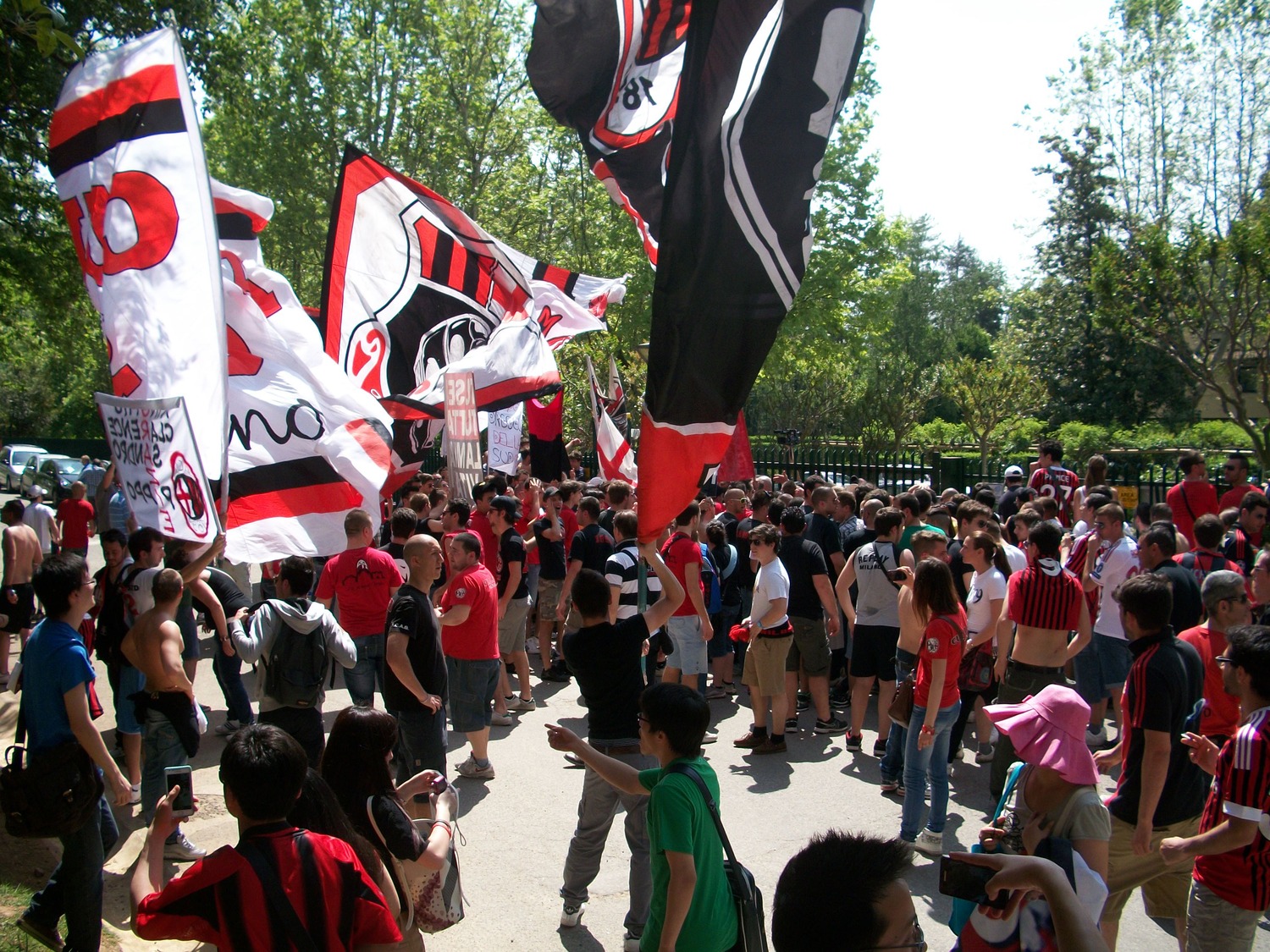Questa mattina c'erano più di 500 persone a Milanello per sostenere il Milan e salutare i tanti campioni rossoneri che lasceranno il club a fine stagione. La Curva Sud era come sempre al fianco della squadra con bandiere e striscioni e ha incitato tutti i giocatori con i cori personalizzati. Rivivi la mattinata al Centro Sportivo di Carnago con le immagini più belle.