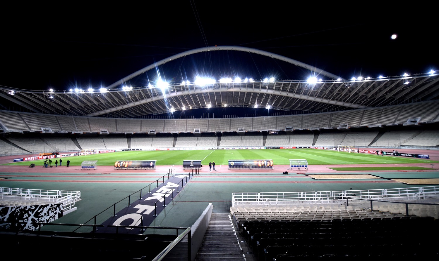 MilanNews.it vi porta dentro lo Stadio olimpico Spyros Louīs dove domani, a partire dalle 19 ora italiana, il Milan affronterà l'AEK Atene in trasferta. Questa struttura è nota a tutti i tifosi rossoneri per aver ospitato, nel 2007, la rivincita dei rossoneri contro il Liverpool, quando Filippo Inzaghi piegò i Reds con una doppietta. Nelle foto scattate da Daniele Mascolo per MilanNews.it potrete ammirare la bellezza della struttura e le porte dove l'ex attaccante milanista superò Reina.