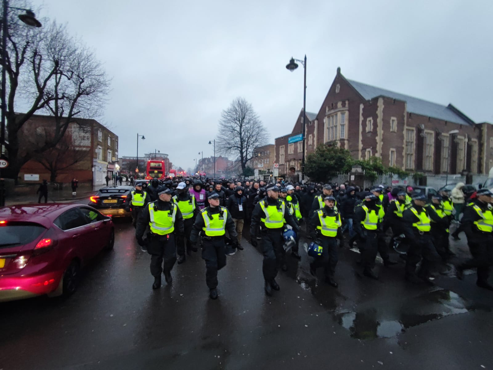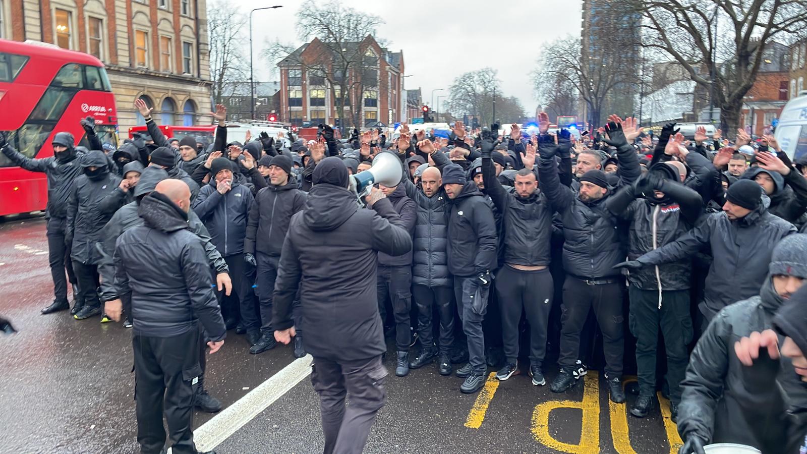 PHOTOGALLERY MN - Pioggia e freddo non fermano la Curva Sud, un migliaio di tifosi rossoneri in corteo a Londra