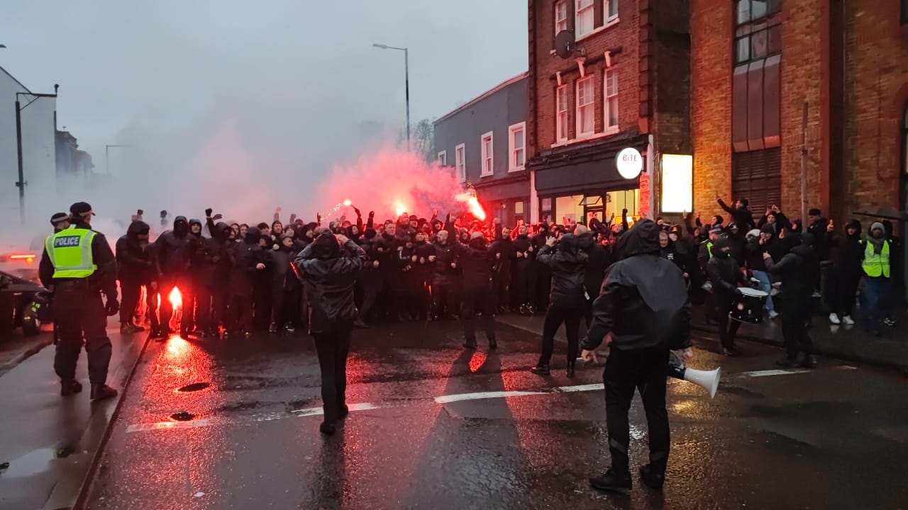 Freddo gelido e pioggia non fermano la passione di più di mille tifosi rossoneri: la Curva Sud, come dimostra la fotogallery scattata dai nostri inviati a Londra, si è avviata in questi istanti in corteo verso lo stadio del Tottenham. Cori, fumogeni e tanto amore per il Milan, le strade di Londra per un pomeriggio diventano rossonere.