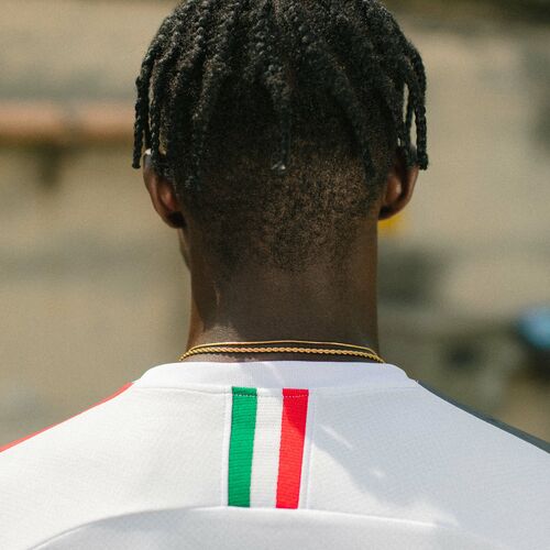 L’ultima versione dell’Away kit s’ispira al design classico. Conserva il suo look puro e minimal, mentre sulle spalle è rappresentata la stessa proporzione di rosso e nero del Milan, preservando il DNA del Club: 50% Rosso, 50% Nero, 100% AC Milan.
