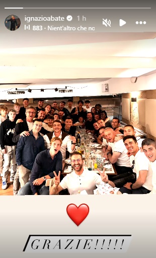 Primavera, tutta la squadra a cena con Abate: "Grazie!"