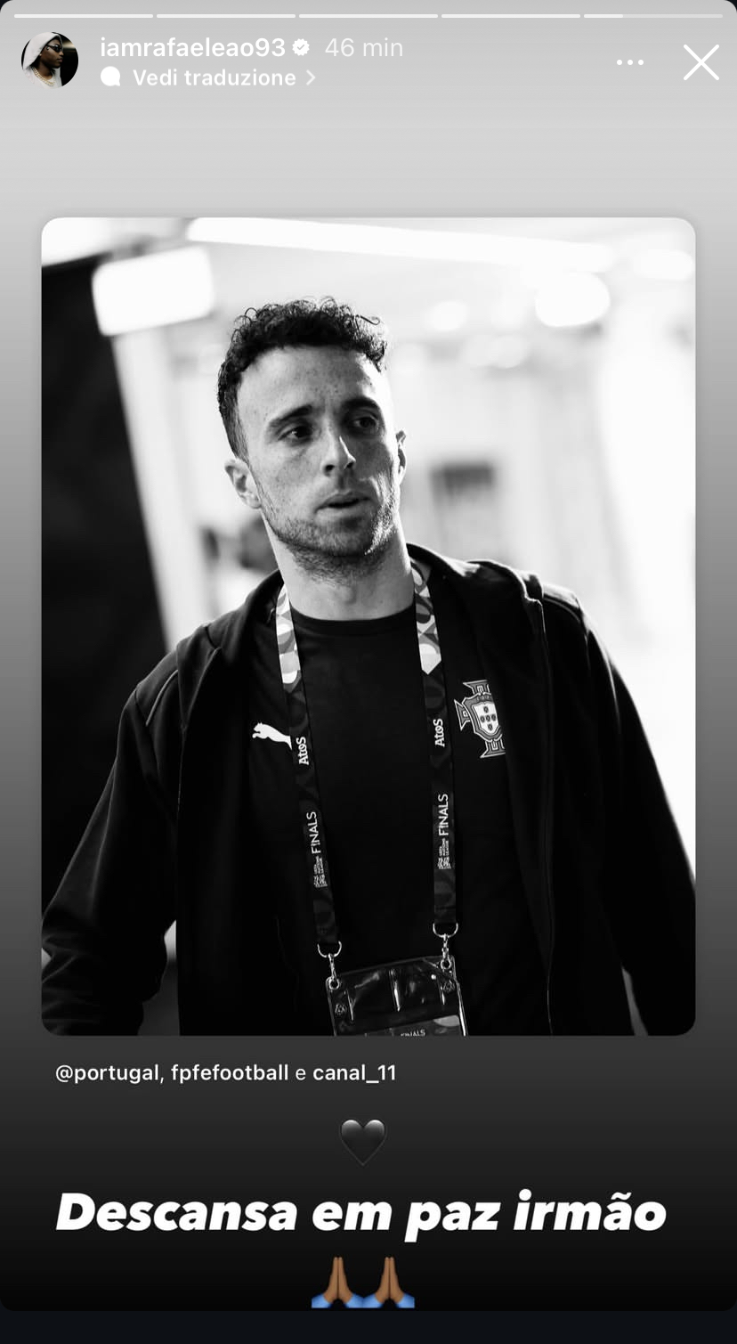 Messaggio di cordoglio di Rafa Leao nei confronti di Diogo Jota, che nella notte ha perso la vita, assieme a suo fratello André, a seguito di un incidente stradale nei pressi di Zamora, in Spagna.