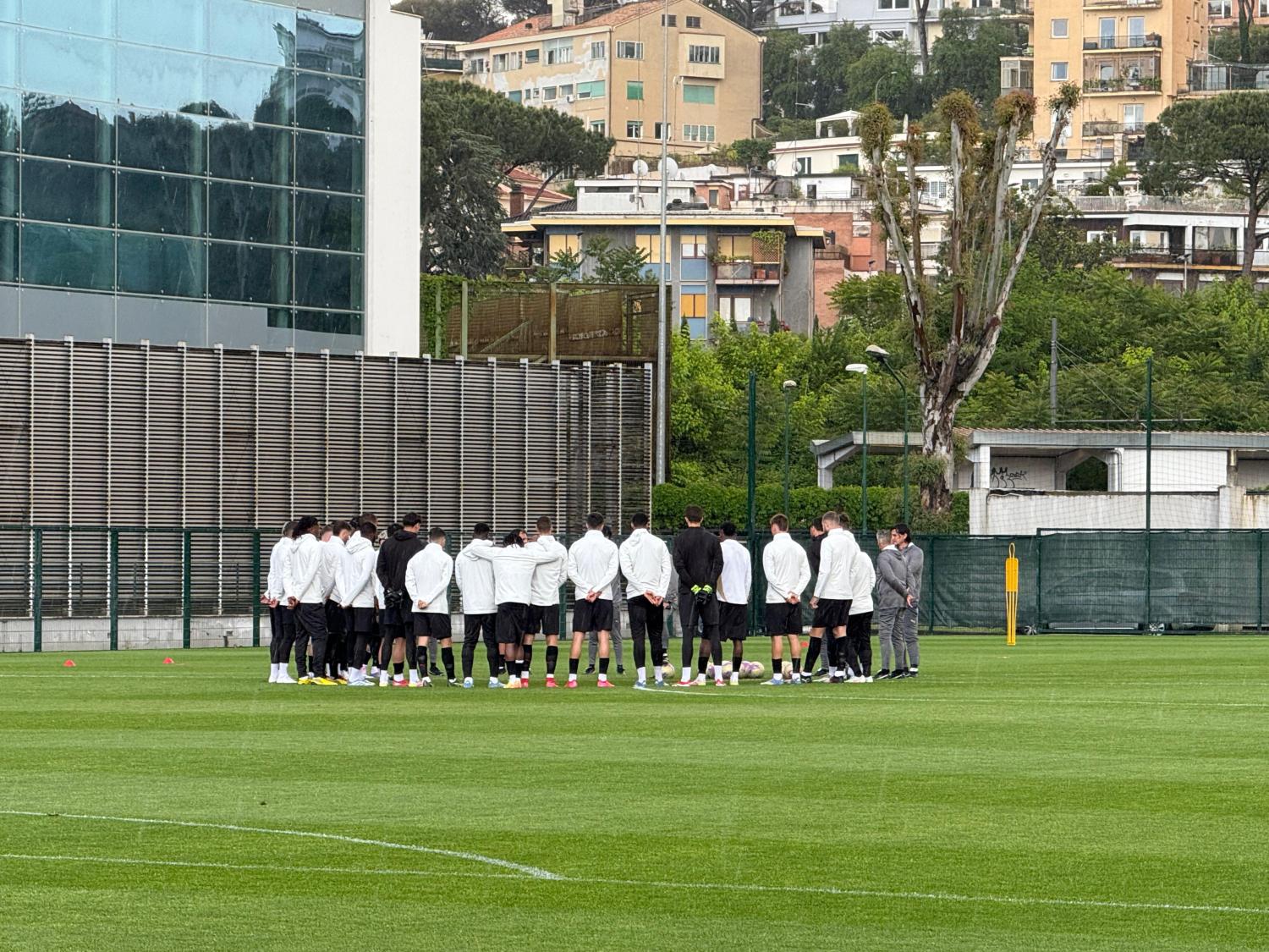 Allenamento di rifinitura del Milan cominciato da pochi istanti, come dimostrano le immagini raccolte dai nostri inviati a Roma. Cominciano gli ultimi preparativi verso la finale di Coppa Italia di domani sera all'Olimpico contro il Bologna: ingresso in campo dei giocatori e cerchio a centrocampo dove mister Conceiçao ha preso parola prima della seduta di allenamento.