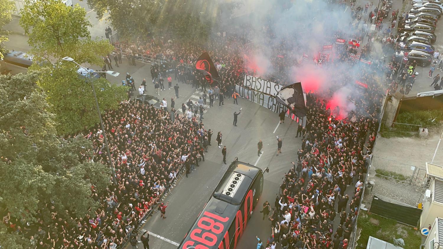 All'arrivo del pullman del Milan, la squadra è stata accolta dal corteo di tifosi fra bandiera e fumogeni e un grande striscione ben esposto, che recita: "Basta scuse, ultima chiamata".