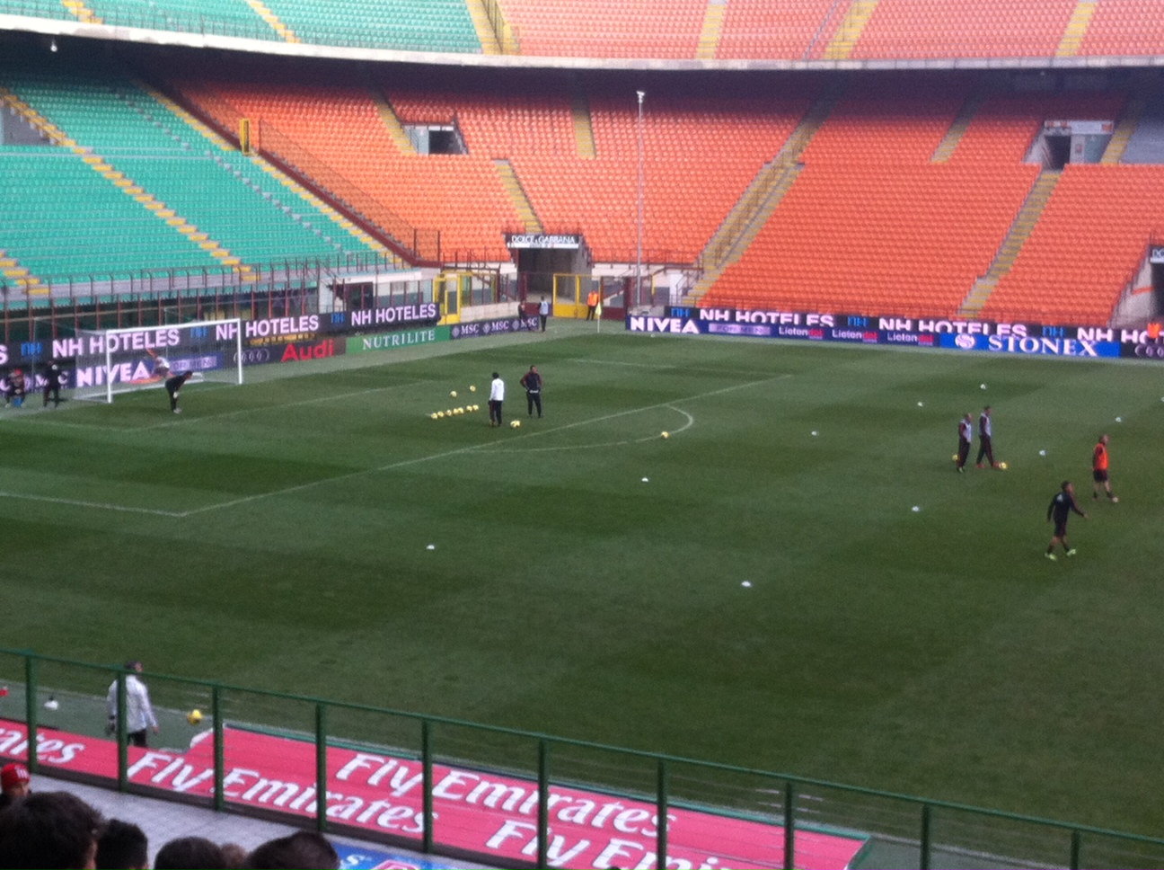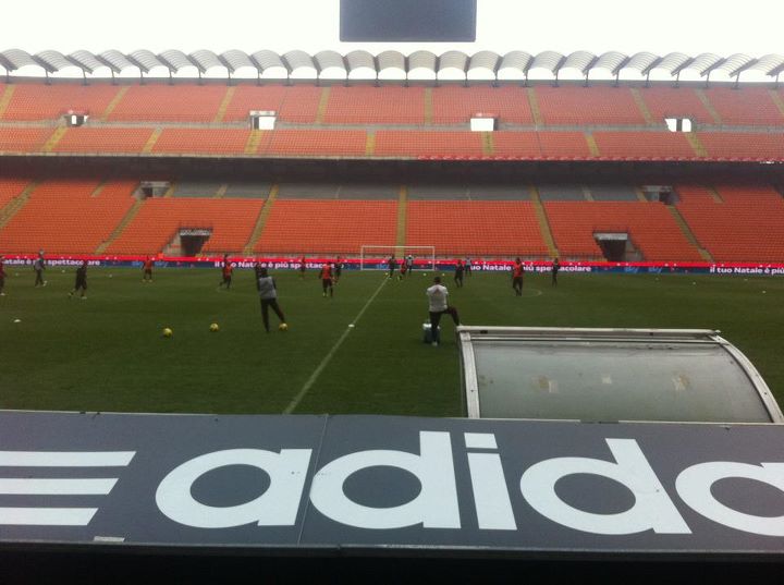 Prosegue l'allenamento dei rossoneri a San Siro (in basso la foto)