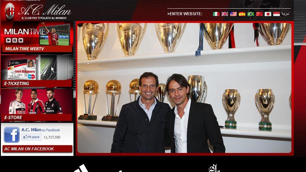 - Sulla home page del sito ufficiale del Milan, è stata pubblicata poco fa una foto di Allegri e Inzaghi nella Sala delle Coppe della sede rossonera. I due hanno fatto pace dopo un colloquio chiarificatore con l'amministratore delegato milanista Adriano Galliani.