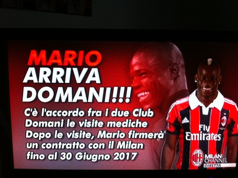 11.07 - A.C. Milan comunica di aver acquisito dal Manchester City F.C. Mario Balotelli, che ha firmato un contratto fino al 30 Giugno 2017. (acmilan.com)