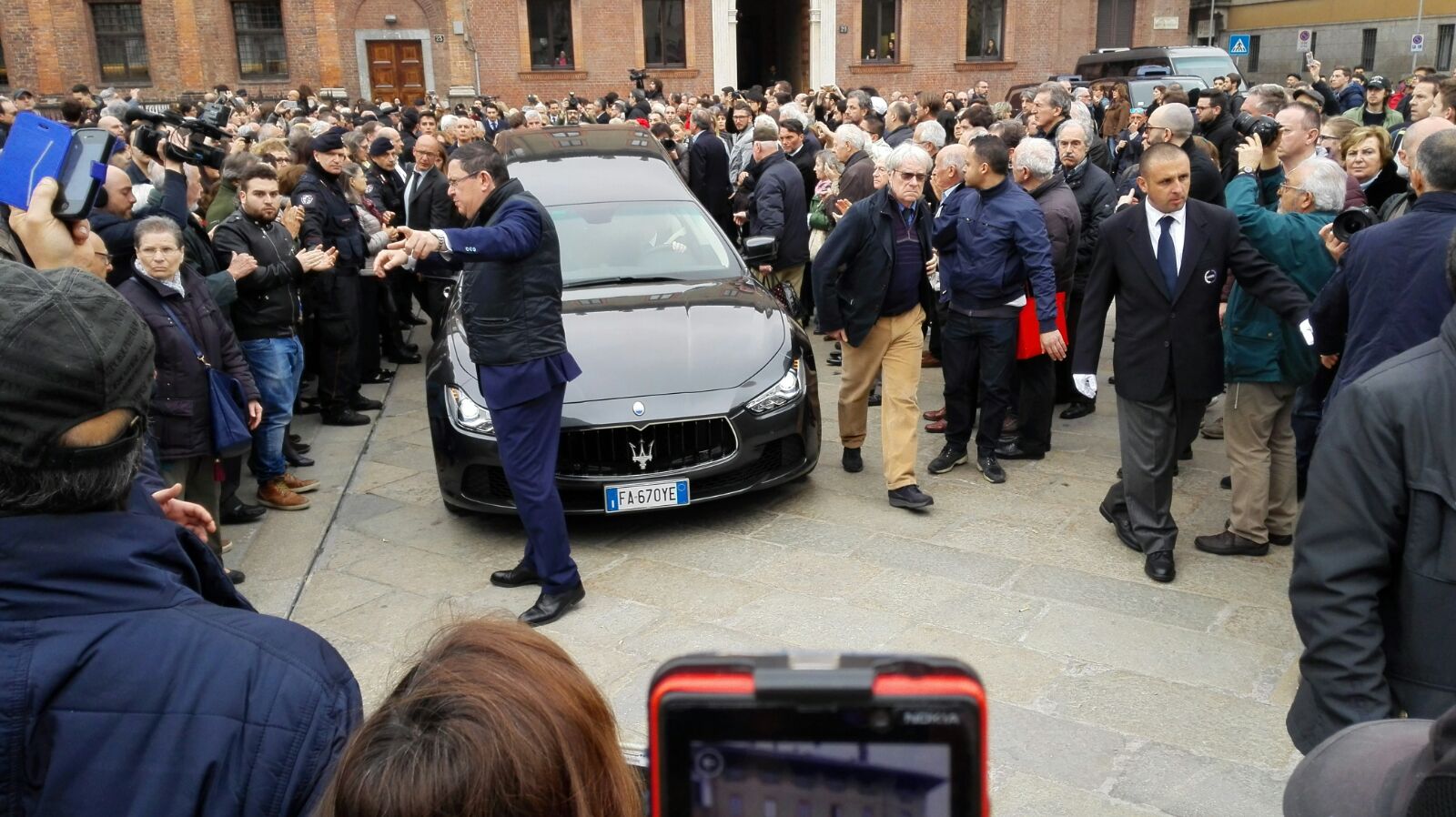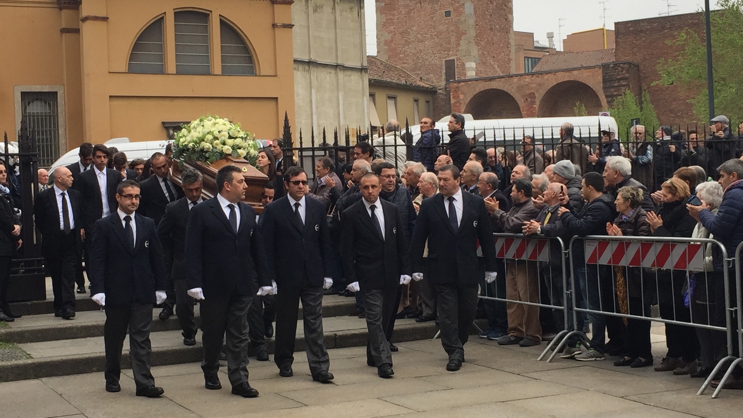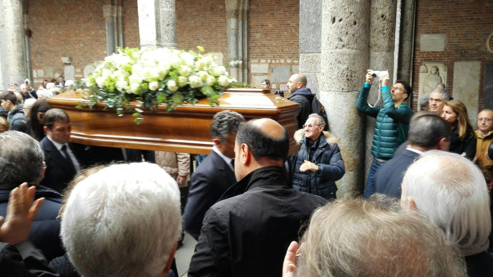 12.06 - La bara di Cesare Maldini esce dalla Basilica di Sant'Ambrogio.