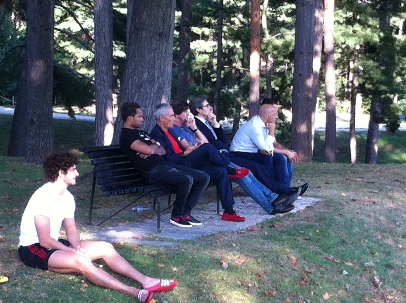 Il test in famiglia di giocherà sul campo centrale di Milanello perchè il manto erboso del campo esterno non è in ottime condizioni. I giocatori della prima squadra sono tutti insieme, l'altra formazione sono tutti ragazzi della Primavera. Prima squadra con pettorina arancione, gli altri in maglia nera.