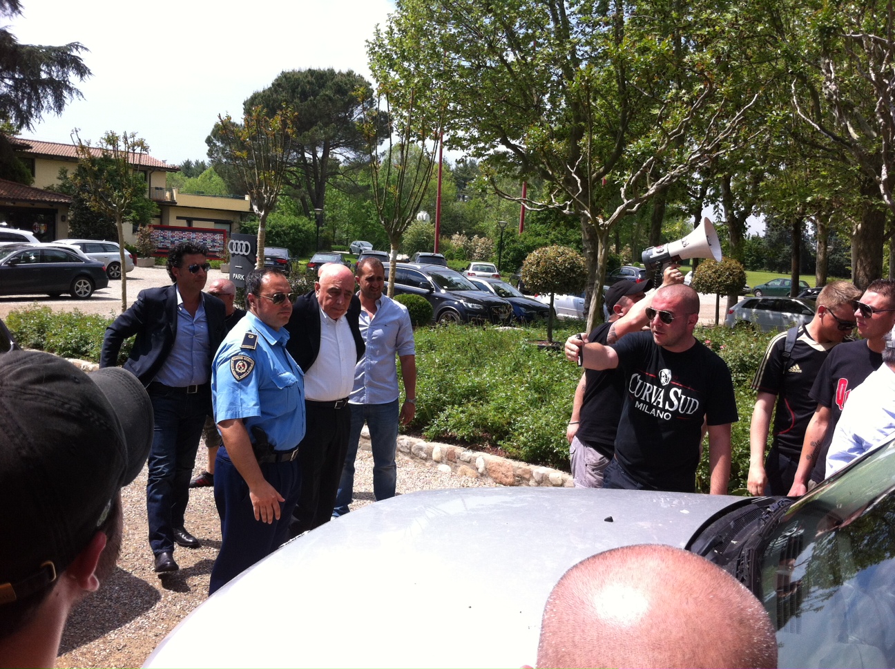 10.40 - Sono già numerosi i tifosi presenti a Milanello. La Curva Sud, però, non è ancora arrivata. Grande acclamazione per Cassano al suo arrivo.