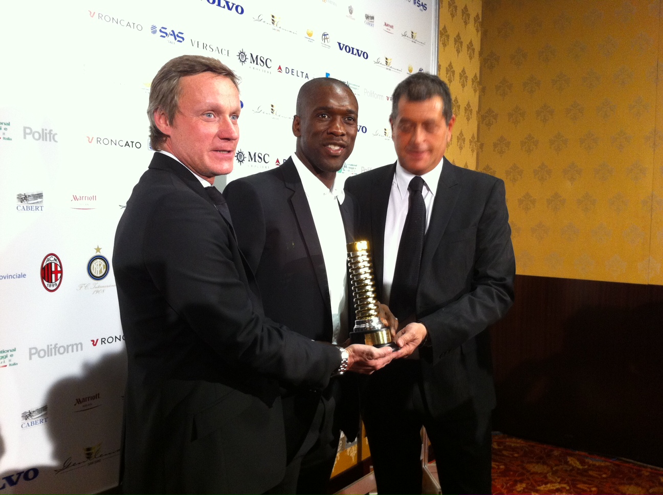 22.40 - Clarence Seedorf ha ricevuto il premio San Siro Gentlman 2012 per quanto riguarda la stagione del Milan.