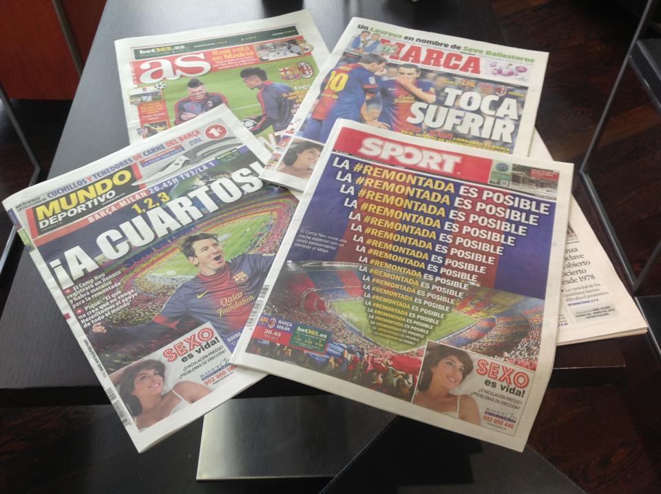 Come si evince, i due quotidiani catalani sono molto pomposi per quel che riguarda la partita mentre quelli di stampo madrileno sono più cauti.
