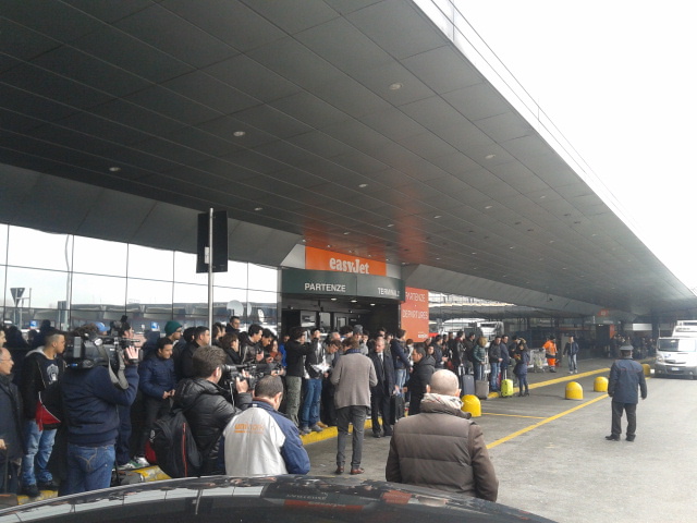11.20 - All’ingresso dell'areoporto tanti tifosi ad aspettare e incitare la squadra. I giocatori hanno fatto autografi e foto fermandosi con la gente presente alla Malpensa (foto in basso scattata da MilanNews.it)