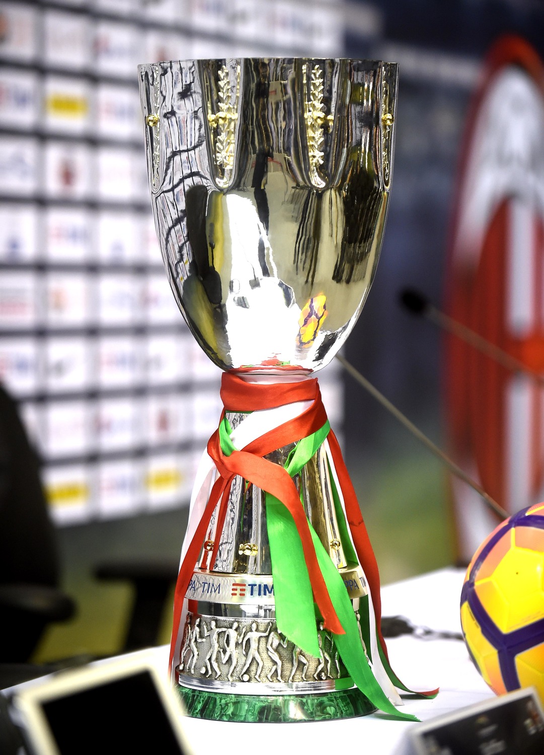 Ecco il trofeo che Milan e Juve si contenderanno domani, la SuperCoppa Italiana messa in mostra nella sala stampa che ha accolto la Juve per le parole di Allegri e Buffon e tra poco accoglierà Montella e Abate in conferenza. Guarda le immagini in basso scattate dal fotografo di MilanNews.it in Qatar.