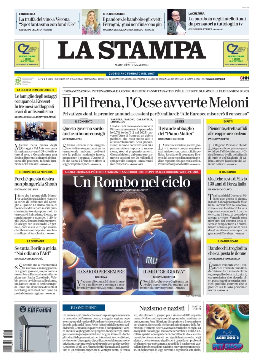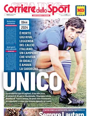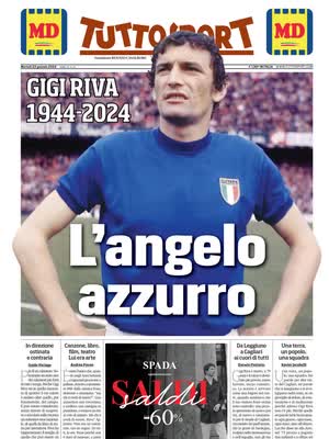 Gigi Riva è morto. Un grande lutto ha colpito il mondo del calcio, dopo aver accusato un malore la sera di domenica ed essere stato ricoverato in ospedale a Cagliari, Gigi Riva non ce l'ha fatta e se ne è andato ieri sera. Una leggenda del calcio italiano e sardo: è il miglior marcatore della Nazionale Italiana e ha dato speranza e gioia al Cagliari e a tutta la Sardegna. Oggi sulle prime pagine dei giornali viene salutato così,