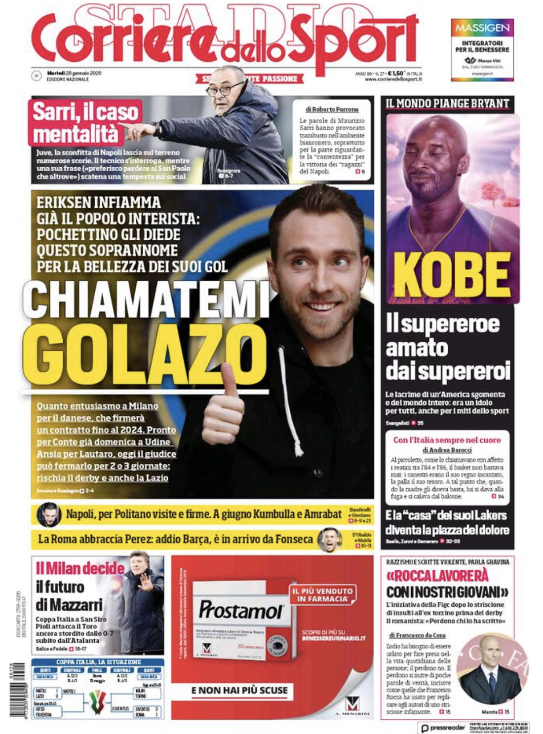 C’è spazio anche per la partita di questa sera sulla prima pagina dell’edizione odierna del Corriere dello Sport, che pone l’accento sull’importanza di questa sfida per il futuro della panchina granata. "Il Milan decide il futuro di Mazzarri", titola il noto quotidiano sportivo della Capitale, che poi aggiunge: "Coppa Italia a San Siro, Pioli attacca il Toro ancora stordito dallo 0-7 subito dall’Atalanta".