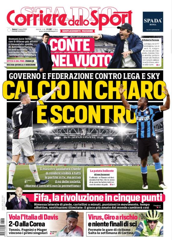 Corriere dello Sport in prima pagina: "Calcio in chiaro, è scontro"