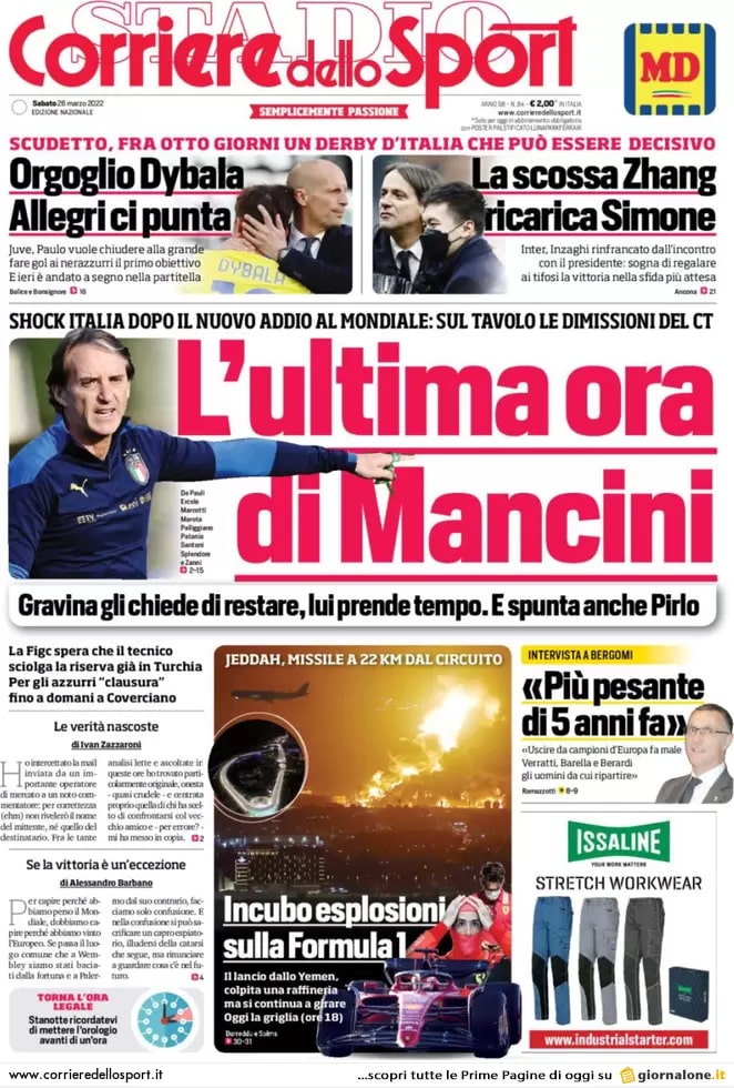 Corriere dello Sport: "L’ultima ora di Mancini"