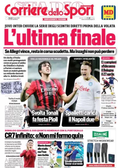 L’edizione odierna del Corriere dello Sport pone l’accento in prima pagina sulla crescita di uno dei pilastri del Milan. "Svolta Tonali: fa festa Pioli", titola il noto quotidiano sportivo della Capitale, evidenziando così l’importanza del giovane rossonero, diventato un punto fermo della squadra nonché uno dei leader dello spogliatoio. Ora Sandro vuole prendersi anche la Nazionale.