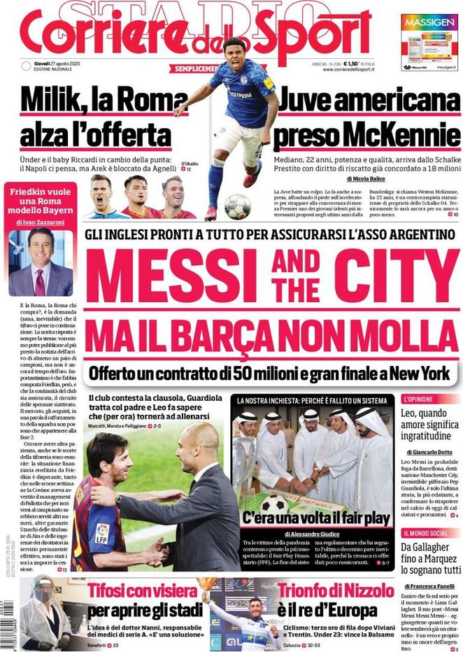 "Tifosi con visiera per aprire gli stadi". L'idea, come riporta il Corriere dello Sport in prima pagina, è del dottor Nanni, responsabile dei medici di Serie A: "È una soluzione", ha dichiarato. Insomma, si studia la riapertura, almeno parziale, degli impianti italiani in vista della partenza del campionato.