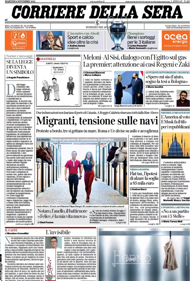 L’edizione odierna del Corriere della Sera si focalizza in apertura sugli incroci estratti per gli ottavi di finale di Champions League, in particolare sulle italiane. Ecco il titolo proposto dal quotidiano in prima pagina: “Bene i sorteggi per le 3 italiane”.